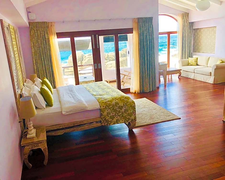 Offering sea and pool views this large air-conditioned room is fitted with wooden flooring and features a flat-screen satellite TV, a sofa and a private balcony or terrace. The private bathroom includes a shower and free toiletries.